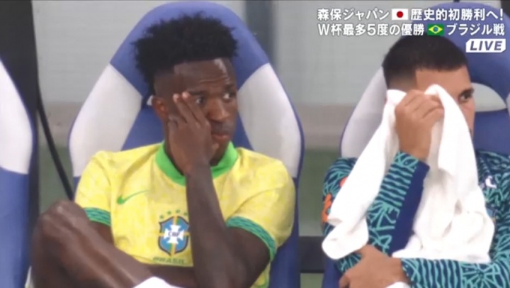 2025-10-15 00:07:15有点无语!日本连追三球反超巴西,维尼修斯替补席上面无表情